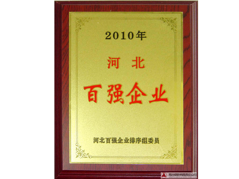 邢鋼榮獲2010年“河北省百強企業(yè)”榮譽稱號