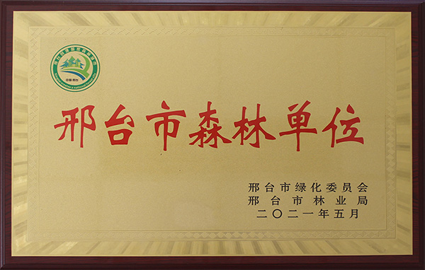 2021年5月,邢鋼獲得由邢臺市綠化委員會、邢臺市林業(yè)局頒發(fā)的“邢臺市森林單位”稱號。