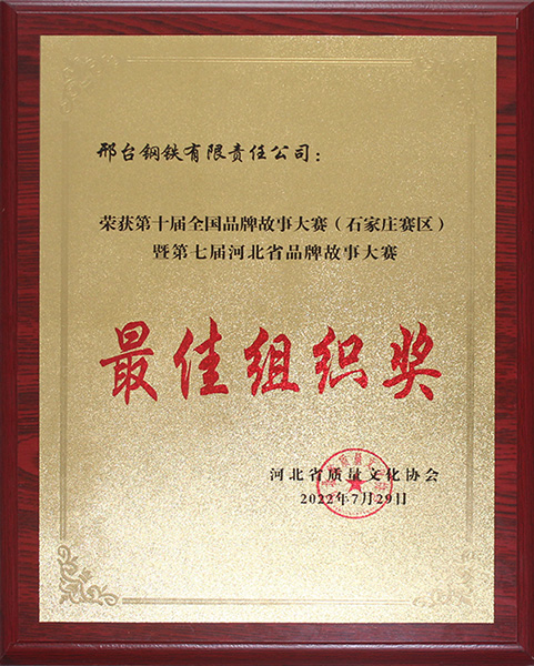 2022年7月29日,邢鋼代表團應邀參加了“第十屆全國品牌故事大賽(石家莊賽區(qū))暨第七屆河北省品牌故事大賽”。邢鋼4篇征文、2個微電影、1個演講作品和1個短視頻頻斬獲嘉獎,邢鋼榮獲“最佳組織獎”。