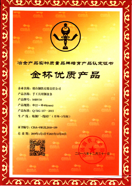 - 邢鋼手工具用鋼盤條50BV30榮獲“金杯優(yōu)質(zhì)產(chǎn)品”稱號(hào)