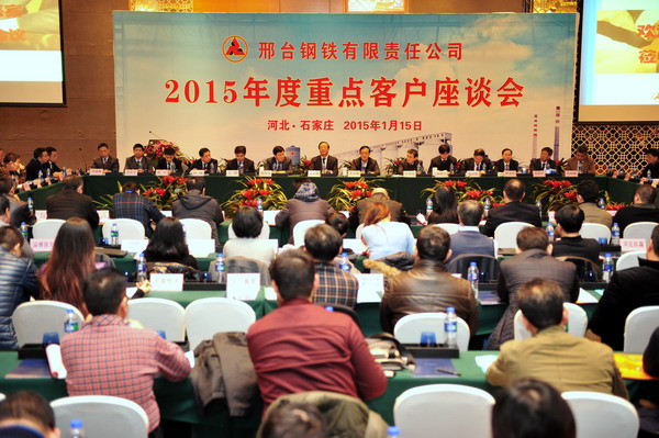 為進一步加強溝通與交流,傾聽廣大客商對邢鋼產(chǎn)品的意見和建議,1月15日,公司在石家莊召開2015年重點客戶座談會。來自韓國、臺灣地區(qū)在內(nèi)的170多家230多名生產(chǎn)制造商、貿(mào)易商代表參加了此次會議。