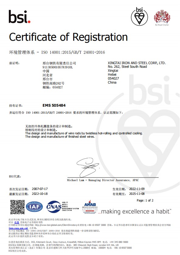 邢鋼盤條環(huán)境產(chǎn)品聲明EPD證書