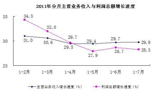 2011年分月主營業(yè)務(wù)收入與利潤總額增長速度統(tǒng)計(jì)圖。(國家統(tǒng)計(jì)局)