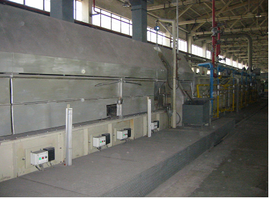 3、奧氏體化:奧氏體化爐為逆流明火加熱式爐型,爐體多段組合,由進絲口起分別設預熱段、加熱一段、加熱二段、加熱三段、加熱四段、加熱五段。按熱處理工藝要求分段設置爐溫及氣氛,以達到工藝處理要求。