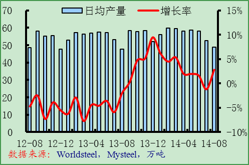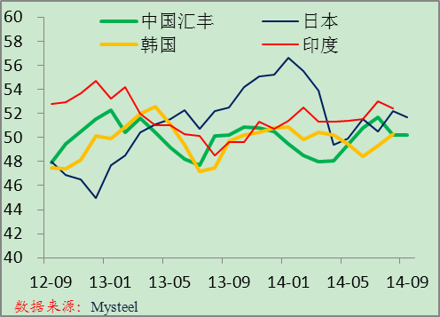 8月份亞洲粗鋼日均產(chǎn)量達到298.4噸,環(huán)比增長0.1%,同比增長1.7%,韓國和印度產(chǎn)量增長明顯。根據(jù)中鋼協(xié)的統(tǒng)計,9月份中國重點鋼企粗鋼日均產(chǎn)量環(huán)比小幅下降,而Mysteel調(diào)查的9月份全國鋼鐵PMI產(chǎn)出指數(shù)也有所下降。預(yù)計9月份亞洲粗鋼日均產(chǎn)量將環(huán)比下降。