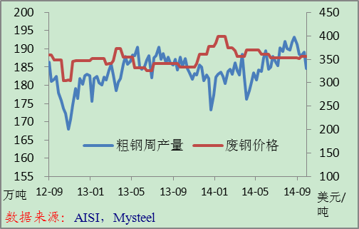 美國粗鋼產(chǎn)量和1號重廢價格 美國鋼材進口量