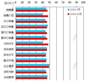 蘭格鋼鐵信息研究中心統(tǒng)計(jì)發(fā)布2014年10月鋼鐵流通業(yè)PMI總指數(shù)為47.8,環(huán)比微升0.6個(gè)百分點(diǎn)(見(jiàn)圖1),顯示鋼鐵流通市場(chǎng)活躍度略有好轉(zhuǎn)。從各項(xiàng)分指數(shù)看,10月份鋼鋼鐵流通業(yè)PMI調(diào)查的10項(xiàng)分指數(shù)5升5降。其中,企業(yè)銷(xiāo)量增加,下游訂單增加,但企業(yè)對(duì)后市較為謹(jǐn)慎,采購(gòu)意愿未增(見(jiàn)圖2)。總體判斷11月鋼鐵流通市場(chǎng)需求景氣微升。