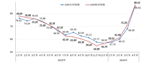 CSPI國內(nèi)長材和板材價格指數(shù)走勢圖