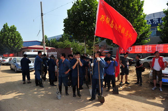 邢鋼志愿者奮戰(zhàn)在救災(zāi)清淤第一線