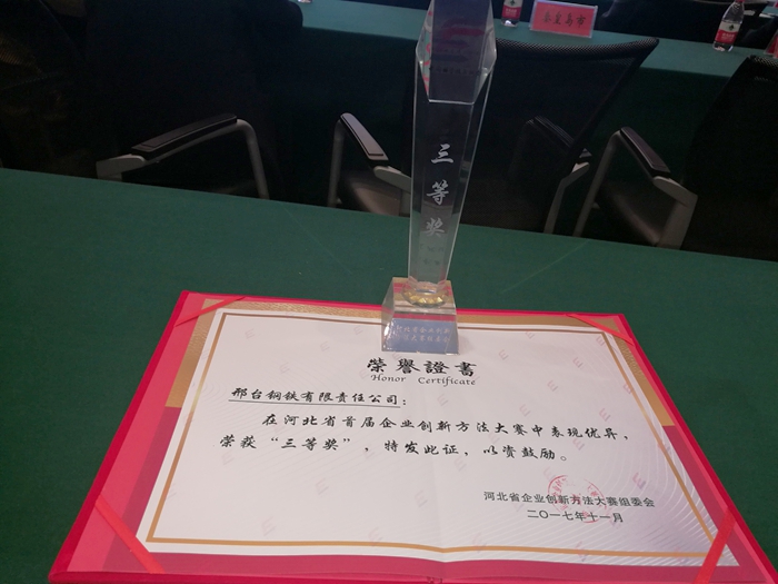 11月14日,“2017河北省企業(yè)創(chuàng)新方法大賽暨中國科協(xié)第二屆全國企業(yè)創(chuàng)新方法大賽”河北賽區(qū)比賽在滄州舉辦,本次大賽重點關(guān)注應(yīng)用方法解決生產(chǎn)實際問題,共設(shè)一等獎一名,二等獎兩名,三等獎三名,近日傳來喜訊,邢鋼煉鋼廠冶煉維修車間電氣儀表作業(yè)區(qū)參加比賽獲得三等獎。