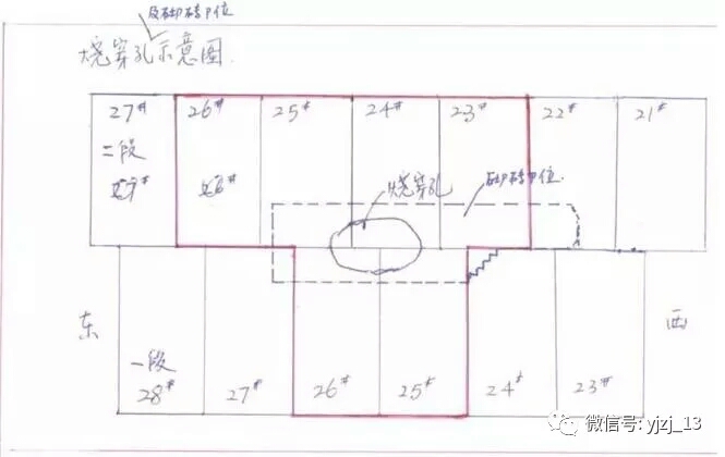 燒穿位置在3-4段冷卻壁之間,32-33號(hào)風(fēng)口下方,距離1號(hào)鐵口左側(cè)1800㎜左右。偏下方800 ㎜。爐缸無冷卻壁,冷卻方式為爐皮外加冷卻水套,總水量450立。