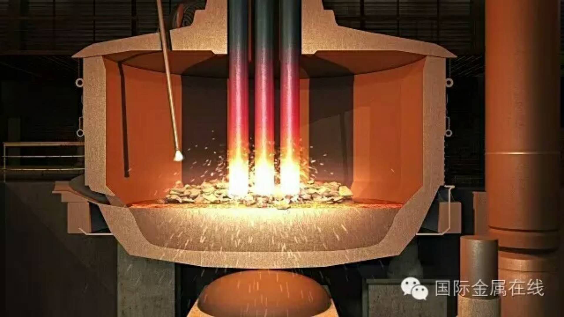 利用電弧熱效應(yīng)熔煉金屬和其他物料的一種煉鋼方法。煉鋼用三相交流電弧爐是最常見(jiàn)的直接加熱電弧爐。煉鋼過(guò)程中,由于爐內(nèi)無(wú)可燃?xì)怏w,可根據(jù)工藝要求,形成氧化性或還原性氣氛和條件,故可以用于冶煉優(yōu)質(zhì)非合金鋼和合金鋼。