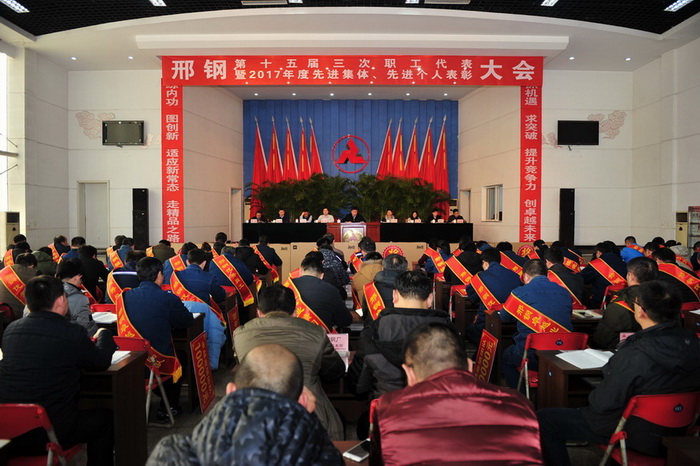 1月16日上午8時(shí),在莊嚴(yán)的《國(guó)歌》聲中,公司第十五屆三次職工代表大會(huì)暨2017年度先進(jìn)集體、先進(jìn)個(gè)人表彰會(huì)在公司會(huì)議中心隆重召開(kāi)。公司領(lǐng)導(dǎo)侯月華、王春雨、王郢、盧纓、喬國(guó)軍、胡黎寧、劉宏偉、梁鋒、王明合出席了會(huì)議。邢臺(tái)市總工會(huì)副主席張春雷應(yīng)邀到會(huì)并致詞。大會(huì)由公司工會(huì)主席梁鋒主持。
