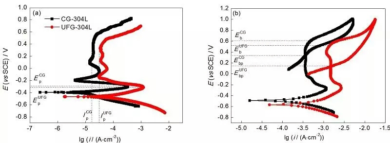 304不銹鋼極化曲線(xiàn),出現(xiàn)陽(yáng)極鈍化區(qū)