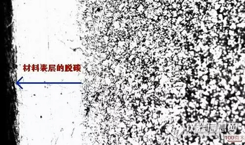 脫碳是一種常見的現(xiàn)象,鋼中的碳與空氣中的氧、二氧化碳和氫氣反應,產(chǎn)生一氧化碳或甲烷,導致表層金屬中的碳逃逸,這就減少了表層金屬中的碳含量。這里需要注意一點,只有當碳氧化的速度小于表層金屬氧化的速度,才會發(fā)生脫碳現(xiàn)象。