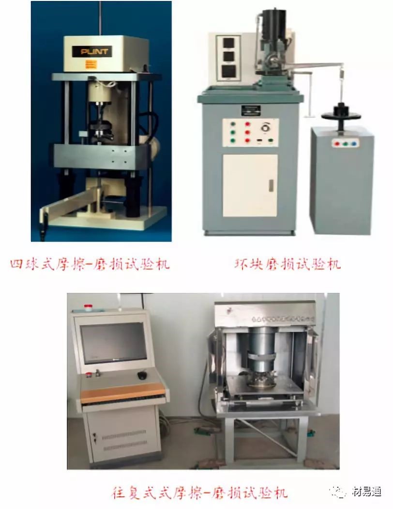 磨損試驗儀器:滾子式磨損試驗機、環(huán)塊磨損試驗機、旋轉圓盤一銷式磨損試驗機、往復式摩擦-磨損試驗機、四球式摩擦-磨損試驗機、接觸疲勞試驗機、濕磨科磨試驗機。