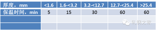 表 2:奧氏體不銹鋼固溶處理保溫時間
