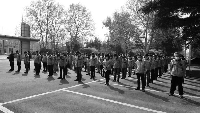 2020年4月4日上午10時,公司在辦公樓外廣場舉行哀悼儀式,下半旗,火車和汽車鳴笛三分鐘,對抗擊新冠肺炎疫情斗爭犧牲的烈士和逝世同胞表示深切哀悼!