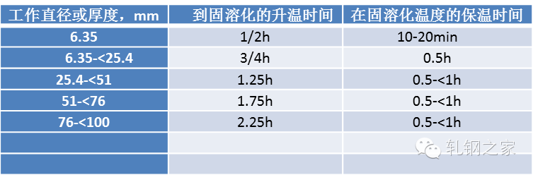 表 2:奧氏體不銹鋼固溶處理保溫時間
