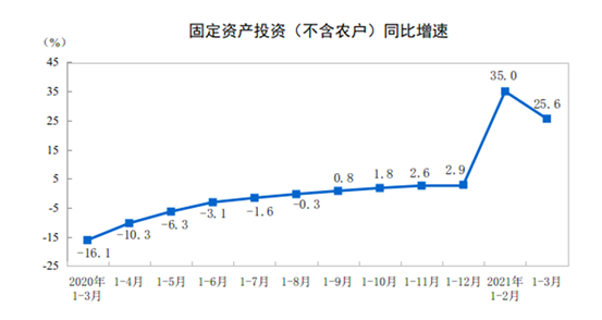 2021年1-3月全國固定資產(chǎn)投資增長25.6%