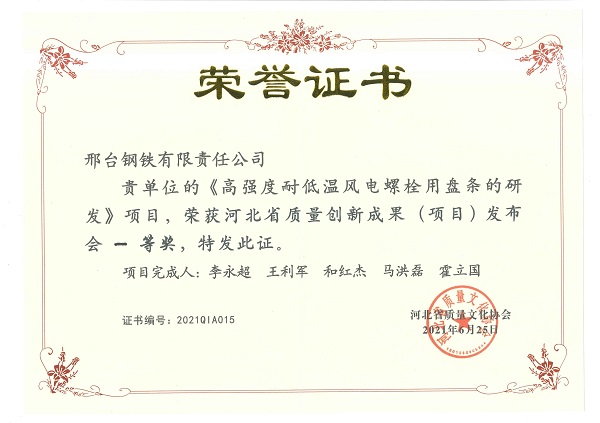 近日,由河北省質(zhì)量文化協(xié)會主辦的“河北省第四屆質(zhì)量創(chuàng)新成果(項目)發(fā)布會”在秦皇島召開,邢鋼精益六西格瑪代表團3個成果入圍發(fā)布會名單,其中《高強度耐低溫風電螺栓用盤條的研發(fā)》和《提高不銹鋼1Cr13澆次連澆爐數(shù)》榮獲一等獎,《提高Q55SiCrA-1線材成材率》榮獲二等獎。