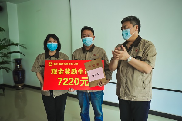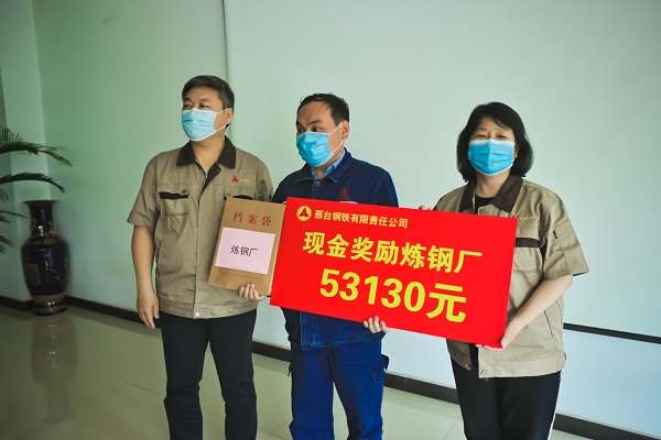 5月16日下午,公司207會議室傳來陣陣熱烈的掌聲,煉鐵廠、煉鋼廠、線材廠、焦化廠、生產部主管人員興高采烈地走到臺前,從公司領導張皓若、劉宏偉手中接過榮譽牌和沉墊墊的現(xiàn)金獎勵。此項舉措,是邢鋼公司對各生產指標連創(chuàng)新高后激勵政策的首次兌現(xiàn),對各單位在“雙效提升”工作中所付出艱辛努力的充分肯定。