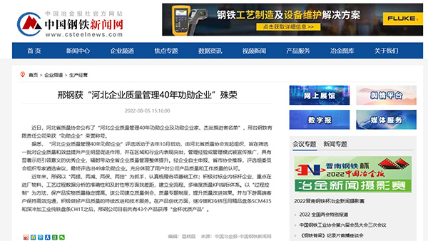 近日,河北省質(zhì)量協(xié)會公布了“河北企業(yè)質(zhì)量管理40年功勛企業(yè)及功勛企業(yè)家、杰出推進(jìn)者名單”,邢臺鋼鐵有限責(zé)任公司榮獲“功勛企業(yè)”榮譽稱號。