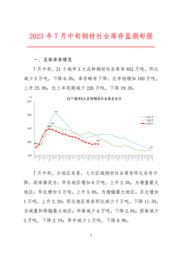 中鋼協(xié):7月中旬鋼材社會(huì)庫(kù)存932萬(wàn)噸 環(huán)比下降0.5%