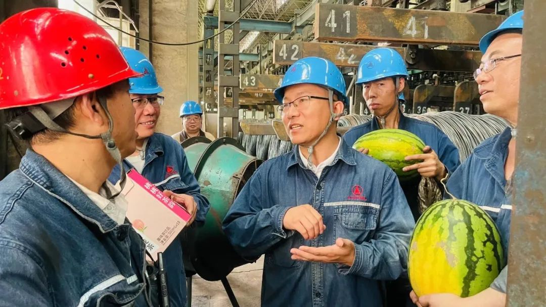 7月8日上午,為落實公司黨委書記、董事長張育明關于“把防暑降溫、關愛員工、安全生產(chǎn)等抓細抓實”的工作要求,夏日送清涼活動有序開展,公司向煉鋼、線材、煉鐵、燒結、動力、儲運高溫下堅守崗位的職工送去西瓜、飲料慰問品及防暑降溫必備物資用品,把企業(yè)的關懷送到職工心坎里,對大家一直以來為邢鋼辛勤付出表達謝意,并囑咐在崗員工在堅守崗位的同時注意勞逸結合,謹防高溫中暑,確保身體健康、安全生產(chǎn)。