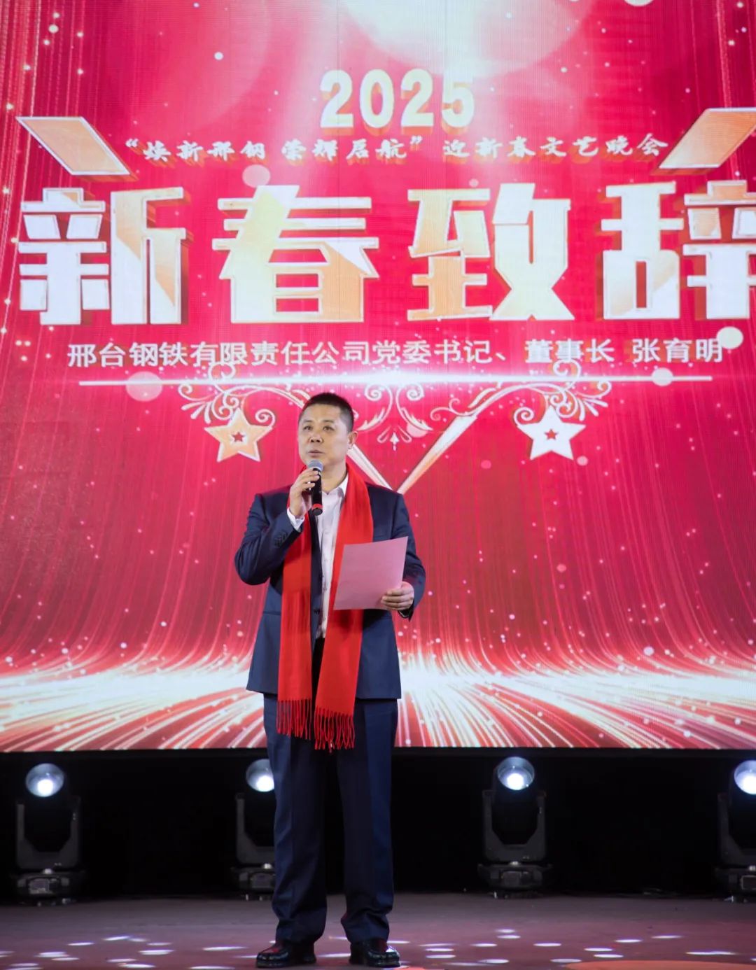 歲序更替,華章日新。1月22日,以“煥新邢鋼,榮耀啟航”為主題的邢鋼2025年新春聯(lián)歡會(huì)在公司會(huì)議中心炫彩啟帷。公司黨委書記、董事長張育明攜公司全體中高層領(lǐng)導(dǎo)與2024年受表彰的先進(jìn)個(gè)人、員工代表歡聚一堂,喜迎乙巳年新春。