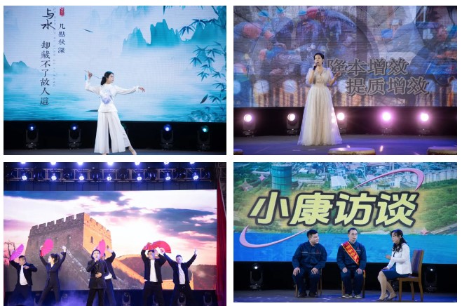 聯(lián)歡會(huì)在煉鐵廠震撼人心的《旗鼓飛揚(yáng)》的鼓聲中拉開帷幕,煉鋼廠、線材廠、新翔公司等二級單位、子公司錄制的《邢鋼一線員工賀新春》視頻為聯(lián)歡會(huì)烘托出濃厚的節(jié)日氣氛。碳資產(chǎn)管理部蘆麗華、線材廠張嬌的一首《紅彤彤的春天》讓觀眾如沐春風(fēng),銷售公司田芳、張可等的動(dòng)感現(xiàn)代舞《奔跑吧,兄弟!》又讓觀眾切身感受到市場營銷人員的拼搏、奉獻(xiàn)。焦化廠申學(xué)軍、閆俊萍等的《難忘的焦?fàn)t情懷》,以情境小品的形式,再現(xiàn)2#焦?fàn)t安全停爐的場景,重溫焦化人站好最后一班崗的敬業(yè)情懷;線材廠魏東的《步步高》,唱出了邢鋼人的激情與豪情。技術(shù)中心蔡永賓等的詩朗誦《攜手邢鋼,追夢邢鋼》,以新一代邢鋼人的視角,張揚(yáng)青春,澎湃激情;煉鋼廠張康健、甄建軍的《想把我唱給你聽》、資金部趙嘉薏的舞蹈《青花瓷》、能源動(dòng)力部董巖的《匆匆歲月細(xì)細(xì)地過》、新翔公司郭文杰、景雙輝等的歌伴舞《雪龍吟》展現(xiàn)了鋼鐵人的別樣情懷。晚會(huì)中的兩個(gè)小品——煉鐵廠的《考察》、煉鋼廠的《小康訪談》,在輕松詼諧的氣氛中,展示了廣大員工對新邢鋼美好未來的信心。邢鋼搬遷項(xiàng)目指揮部與綜合辦公室、線材廠帶來的詩朗誦《希冀,奮進(jìn),筑夢新邢鋼》,回顧了邢鋼搬遷項(xiàng)目的建設(shè)歷程,激勵(lì)全體員工以更加昂揚(yáng)的斗志、更加飽滿的激情,投身到各自的崗位上,讓新邢鋼的旗幟,永遠(yuǎn)在鋼鐵行業(yè)的巔峰飄揚(yáng)!