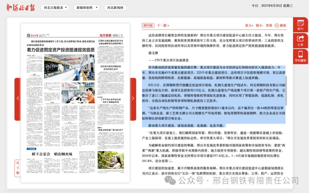 作為推動經(jīng)濟(jì)高質(zhì)量發(fā)展的強(qiáng)引擎,重點項目建設(shè)為全市經(jīng)濟(jì)運行持續(xù)向好注入強(qiáng)勁動力。今年,邢臺市實施45個省重點建設(shè)項目、225個市重點建設(shè)項目,這些項目不僅投資規(guī)模可觀,更以高質(zhì)量、優(yōu)結(jié)構(gòu)的鮮明特質(zhì),在新能源、高端裝備制造、新材料等新興賽道上加速奔跑。