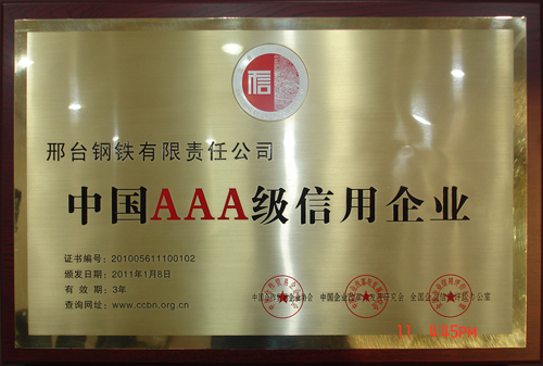 日前,在由中國合作貿(mào)易企業(yè)協(xié)會(huì)、中國企業(yè)改革與發(fā)展研究會(huì)、全國企業(yè)信用評(píng)價(jià)辦公室組織召開的中國企業(yè)科學(xué)發(fā)展論壇暨誠信表彰大會(huì)上,邢鋼被評(píng)為2010年度“中國AAA級(jí)信用企業(yè)”、公司榮獲“全國文明誠信示范單位” 稱號(hào)、董事長、總經(jīng)理袁世臻榮獲“全國優(yōu)秀誠信企業(yè)家” 稱號(hào)。
